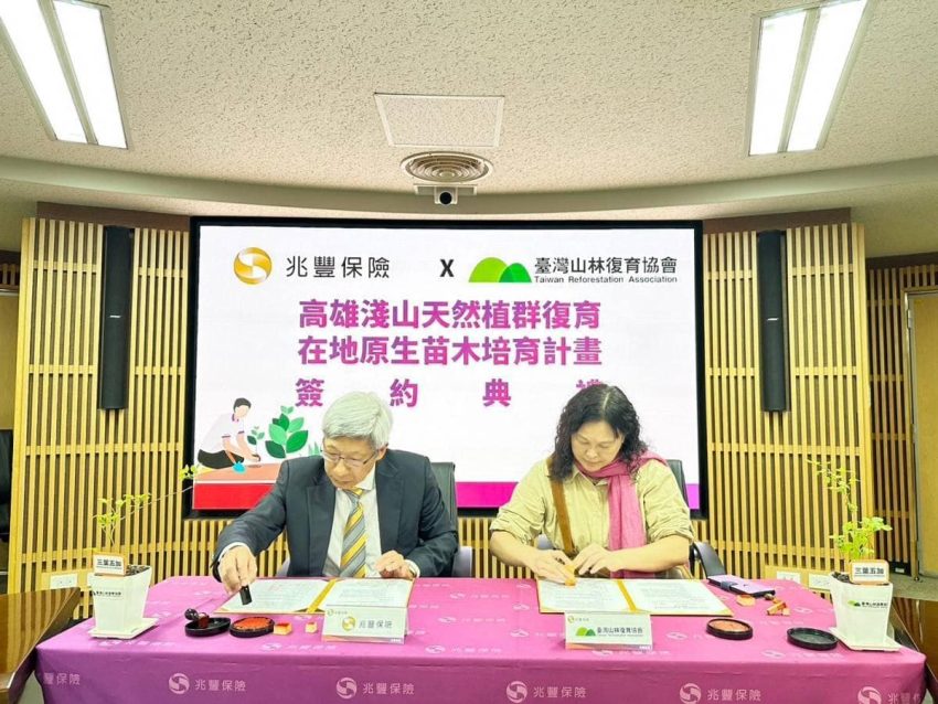 臺灣山林復育協會與文化正心教育基金會(一貫道)合作推動草屯虎山植群復育,2021~2024年累計種植145種樹…