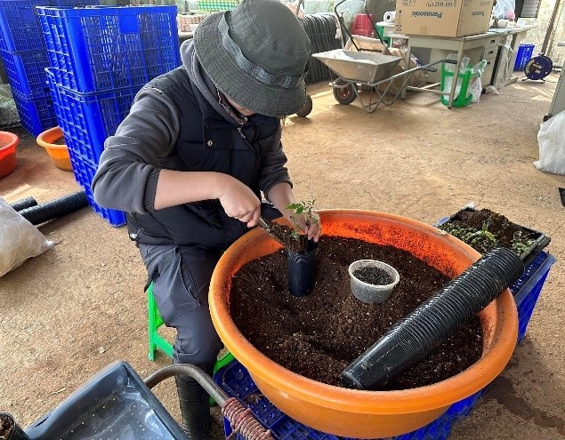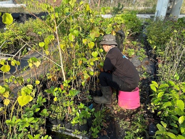 2024 年 1 月苗圃進行苗木盤點,盤點結果苗圃內共計有 6 萬多株原生苗木,這些苗木須定期進行苗盆除草作業,以避免雜草覆蓋苗木造成死傷。