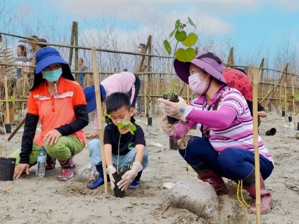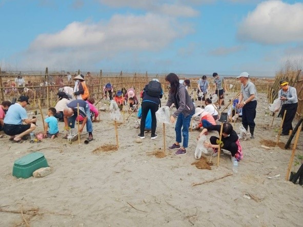 2024年第一季於大安海濱遊客中心完成種植黃槿300株,並將於第二季以執行三明治復育法,以暴風浪為界線,緊鄰此界線優先復育種植「海岸灌叢帶」,如林投、苦林盤、草海桐、臭娘子等,再於海岸灌叢帶後方復育種植「濱海喬木帶」,如黃槿、欖仁、大葉山欖、樹青等,再緊接著濱海喬木帶之後,復育其它榕楠林的樹種,如無患子、黃連木、臺灣海棗、沙朴等。