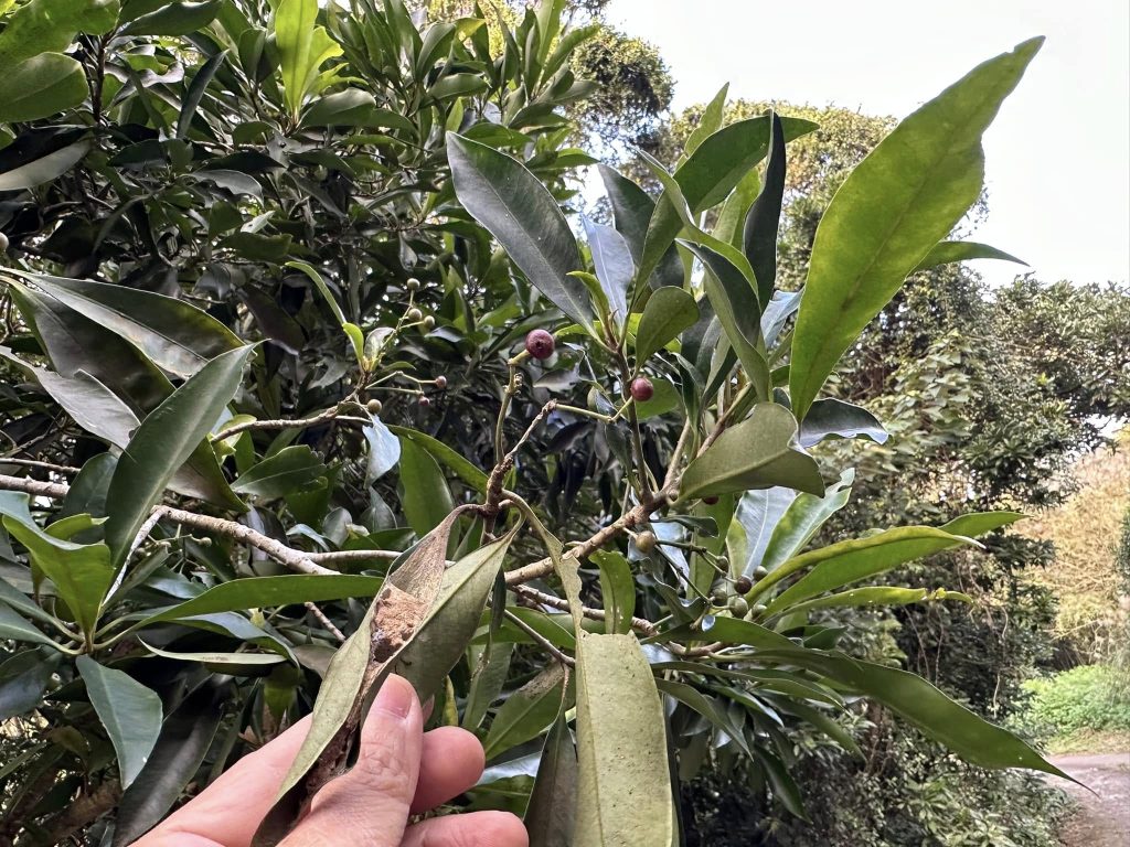 每次出來採種,都覺得身上好像有雷達一樣,開車到某一段有特別感覺時,就會下車查看,幾乎每次都有意外的收穫,今天就遇到一棵胸徑40~50公分的「賊仔樹」,樹高約12公尺,落果滿地,賊仔樹真的可遇不可求,我撿拾柏油路上的種子,就撿了滿滿的一包。