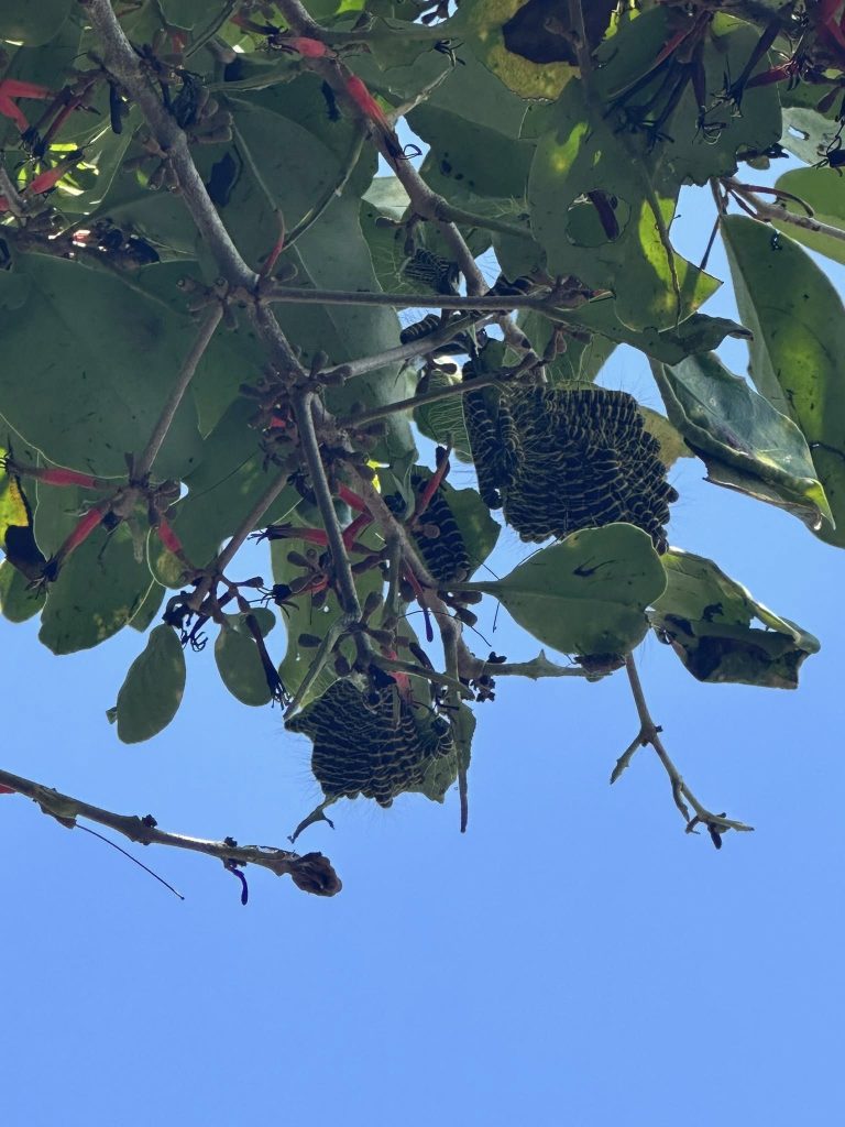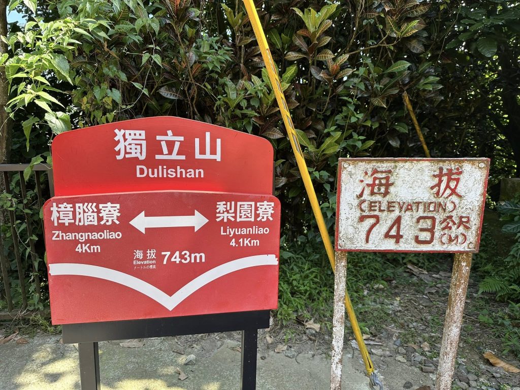 獨立山海拔840公尺,我們從獨立山車站下車,輕輕鬆鬆就獲得了一座小百岳,在山頂的觀景台還仰望看到三隻老鷹(可能是大冠鷲)翱翔天際。前往奉天岩的路上,還意外看到大葉桑寄生盛花及艷粉蝶的幼蟲密集排列在葉背上。