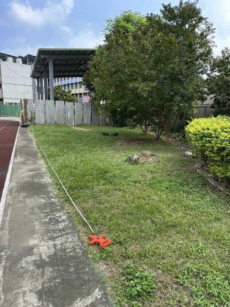 1.區域位於操場跑道側邊,形狀三角形,底10公尺*高20公尺,面積100平方米。