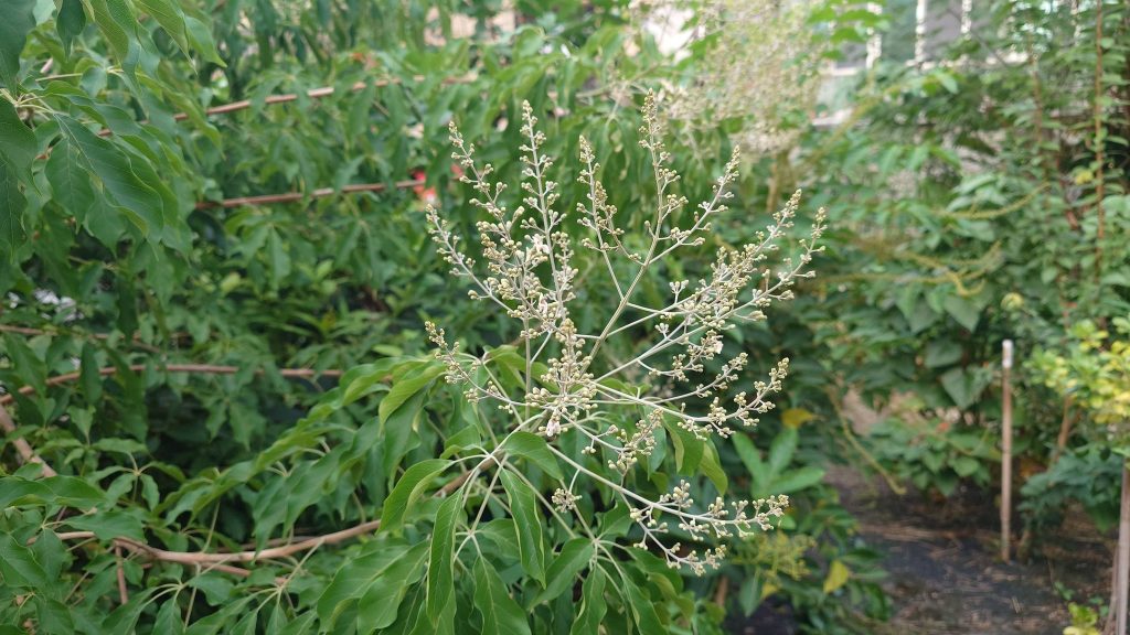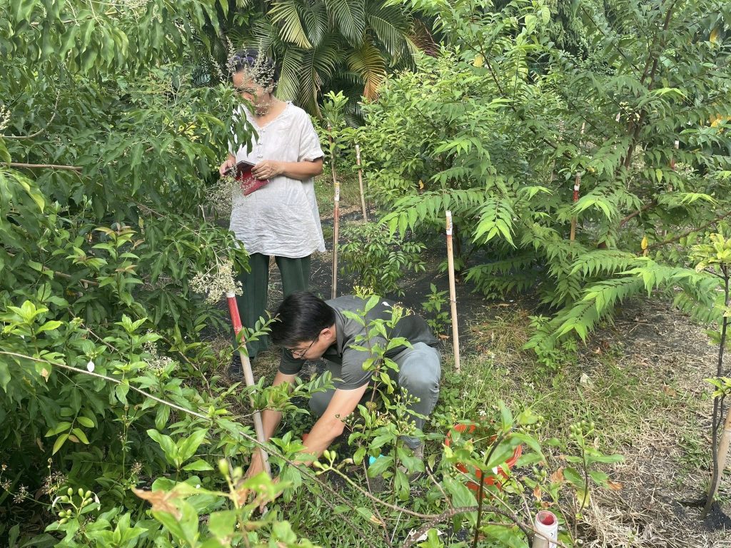 這些樹苗生長旺盛的情形,讓曉明女中的秀菊、麗惠二位老師感到非常驚訝,也非常高興,她們異口同聲說這是「天主保佑」!看到鴉膽子結實纍纍、刺裸實開花結實,秀菊老師答應幫忙顧好這些果實,成熟後採收再送至復育中心。