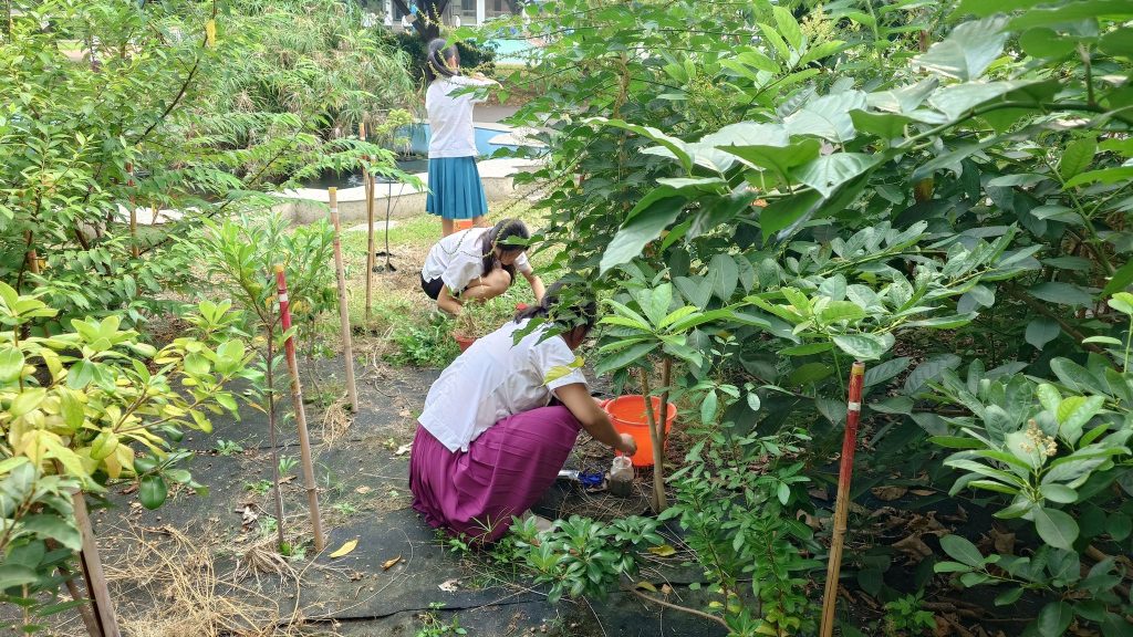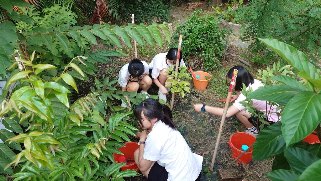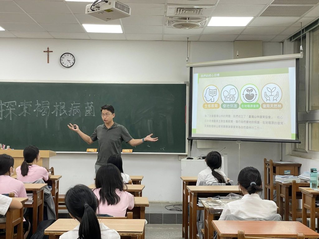 今天我前往曉明女中為綠活社的學生進行二小時的課程,室內課我分享中興大學植病系陳啟予副教授「褐根病菌傳播機制與耐病樹種篩選研究」,室外課則帶學生們到生態樹島進行除草及施肥。去年綠活社的社長她還是高一生,當時她種下的樹苗只有30公分高,沒想到一年後,她高二,許多樹已經比她還要高大!