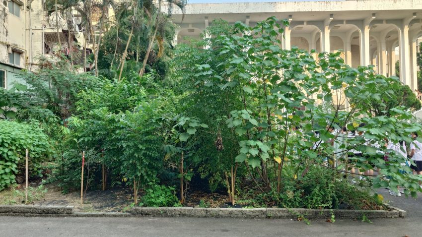 曉明女中校園生態樹島於2024/11/2建置(種植),經過11個月之後,目前(2025/10/8)樹木生長非常良好,如山芙蓉、山菜豆、鴉膽子、杜虹花、沙朴、刺裸實、山柿、山香圓、樹杞、臺灣天仙果、澀葉榕、樟葉楓、對面花、三葉五加、玉葉金花、水同木等。