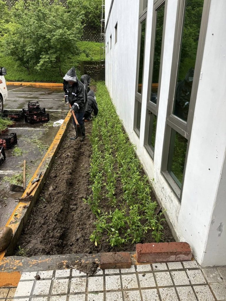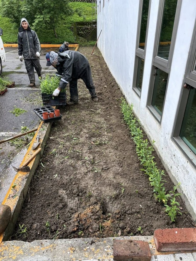 島田氏雞兒腸(Aster shimadai),受脅狀態:易危(VU, Vulnerable),此花圃2025/5/11種植,以間距每10公分一株密植。