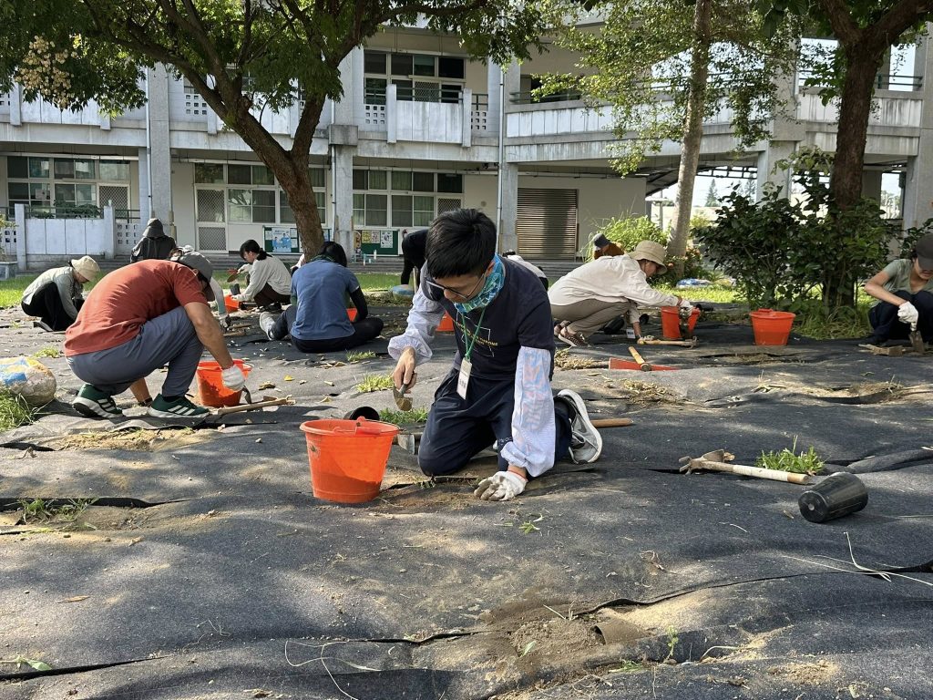 福陽國小將於11/10以校園生態樹島為師生舉辦「植樹教育活動」,但臺中已進入乾季,土壤非常乾硬,我擔心小朋友當天不易挖出符合標準深度的植穴。因此,今天(10/18)我帶領復育志工第16期學員前往福陽國小進行實作訓練。大家流了一個下午的汗,終於挖好了100個植穴,並將挖起的土壤裝入3.5吋黑軟盆後放回植穴中。