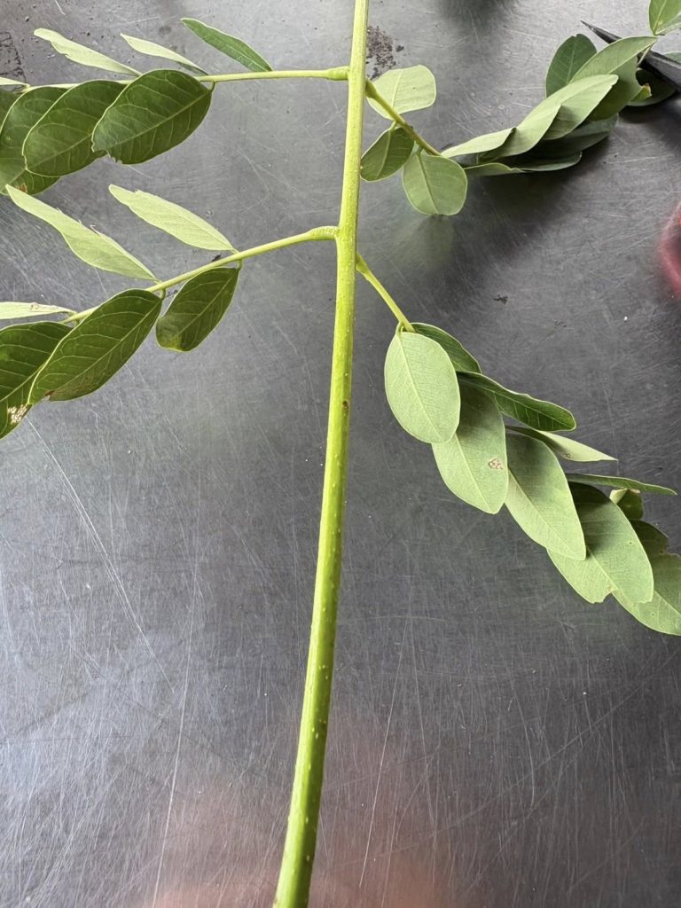 經蘇夢淮老師鑑定,臺灣山林復育協會近日採集的小葉基脈不是三出脈,確定是黃豆樹(Albizia procera)。因為黃豆樹數量很少,這幾年透過植物領域的人士互相通報後,我們即前往可能的點位調查,但大部分都不是黃豆樹,也逐漸釐清黃豆樹的重要特徵。