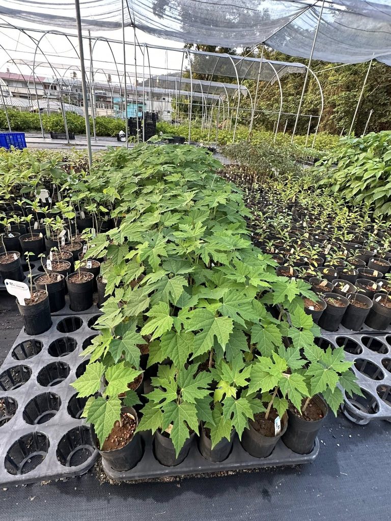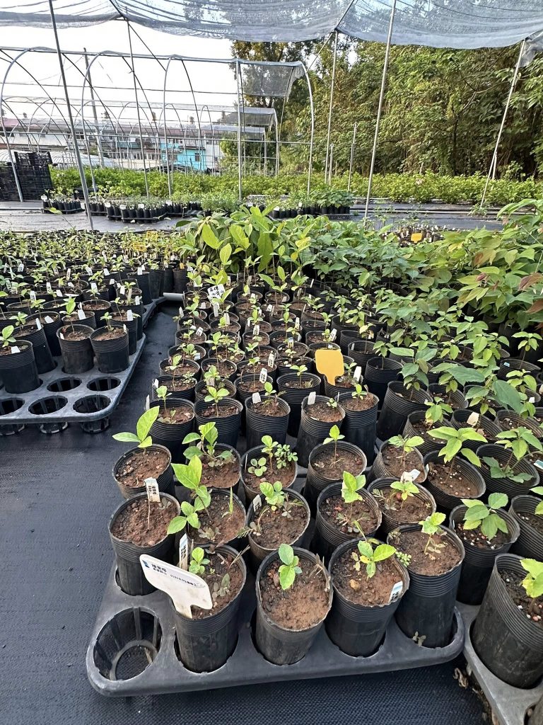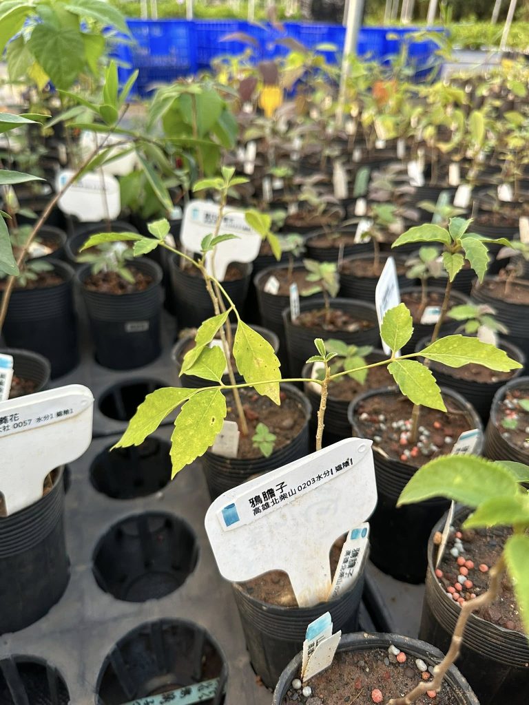 在台光苗圃韋庭及工作夥伴的細心照顧下,送交的幼苗生長狀況良好,經過三個月,首批花蓮苗木615株已順利交貨(菲律賓饅頭果180株、賽欒華90株、九芎45株、大葉楠150株、茄苳150株)。這些苗木將搭配本會所培育的花蓮67種苗木混合打包(合計4,200株),預計於11月中旬送交給林保署花蓮分署進行花蓮新城保安林生物多樣性及棲地復育種植使用。