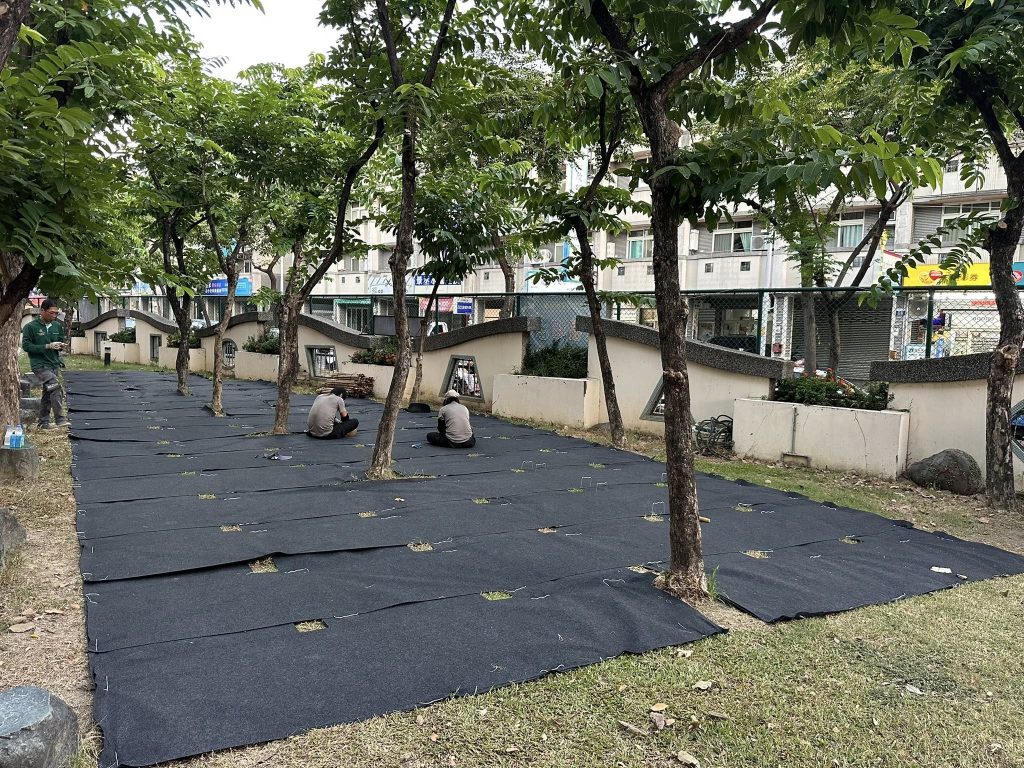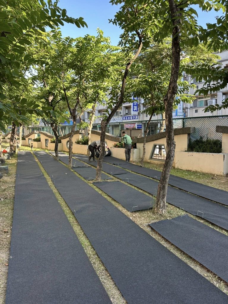 - 2025/11/14 完成立新國小樹島區域不織布鋪設及固定。
