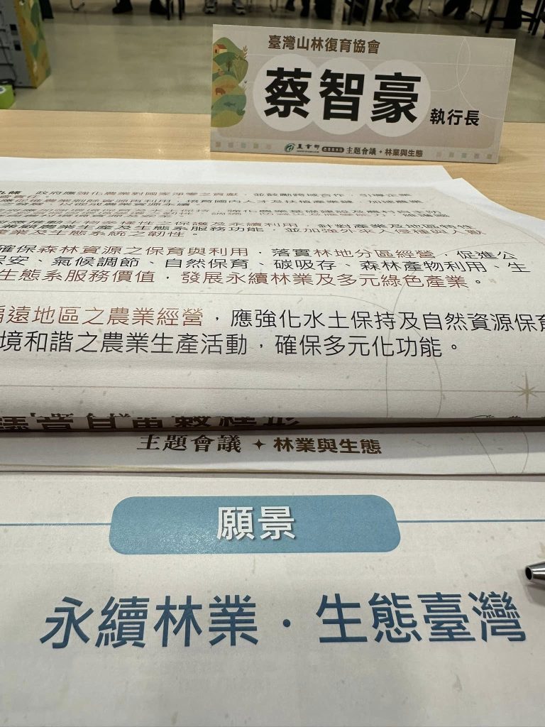 蔡智豪老師前往臺北參加農業部「農業基本法」立法主題會議:林業與生態。