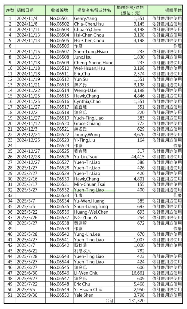 為了向社會大眾公開募款,特別申請公益勸募計畫,本計畫核准文號「衛部救字第1141360012號」,敬請社會各界給予支持。