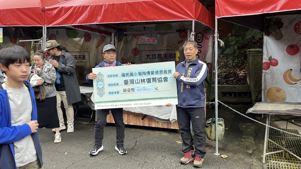 本次義賣活動共募得善款 新臺幣2萬元整,並 全數捐贈予臺灣山林復育協會,作為推動淺山植群復育與環境教育的重要支持。協會深刻感受到,當教育現場願意帶領孩子親近土地、理解自然,山林復育便不只是大人的責任,而是世代共同參與的行動。