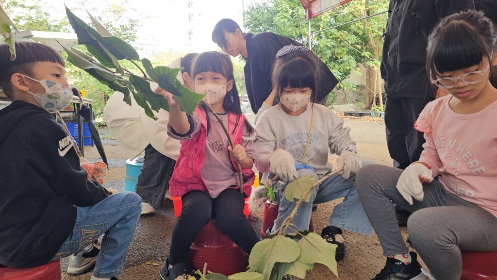活動中,協會蔡智豪老師(執行長)帶領孩子認識構樹。構樹又名「鹿仔樹」,是早期先民用來飼養梅花鹿的重要植物,也是臺灣常見樹種。在中國、臺灣,以及東南亞與太平洋群島地區,構樹更是早期造紙與製布的重要經濟作物,英文稱為 Tapa Cloth Tree。