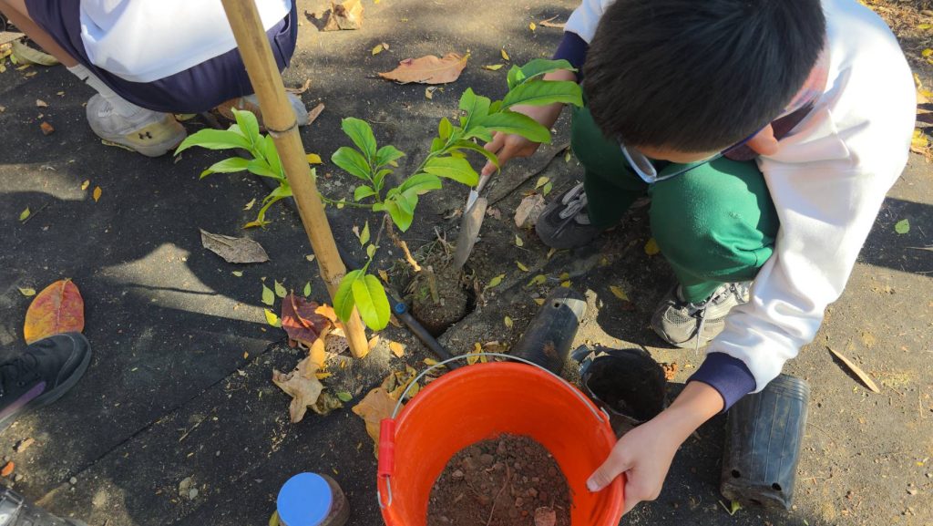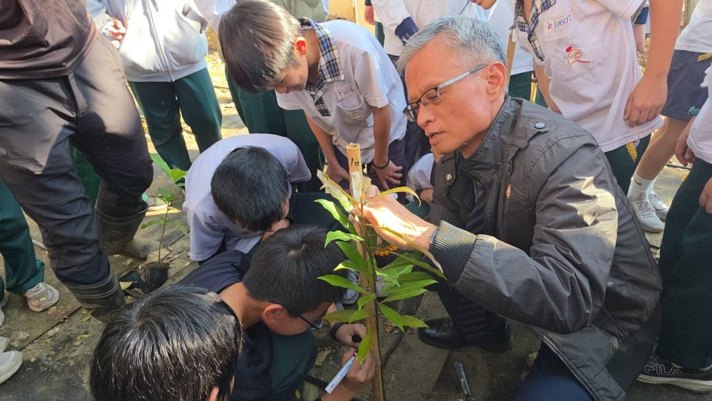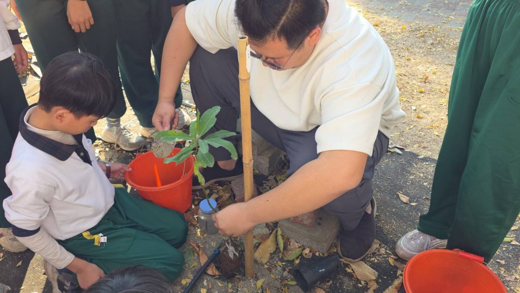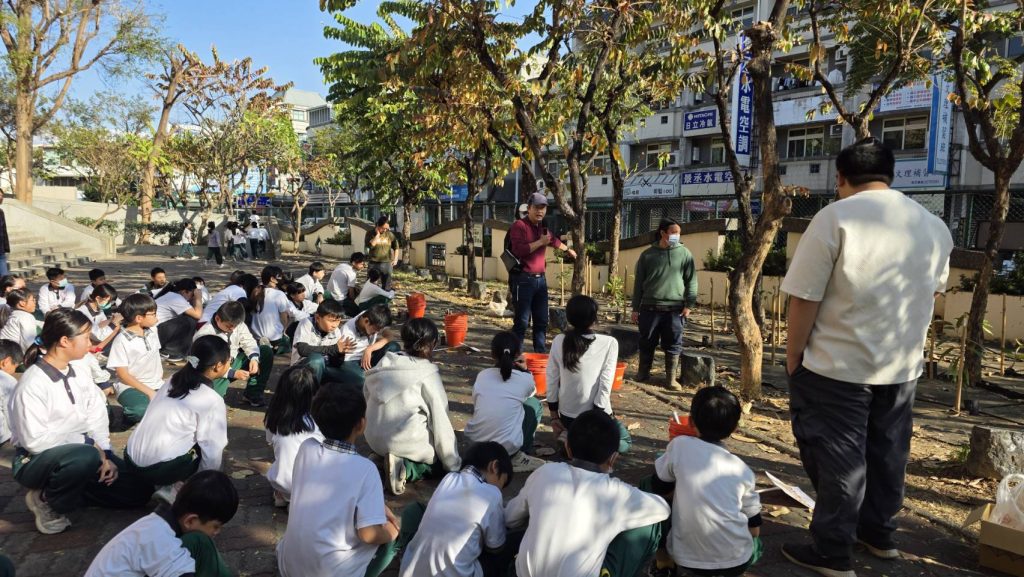 更重要的是位置。立新國小鄰近大里溪、頭汴坑溪,周邊河岸高灘地正是都市中珍貴的生態廊道。這些溪流沿線非行水區的樹林,難以演替至成熟林,或沒有多樣性樹種,往往不是土地不適合,而是「沒有種源」。當校園生態樹島成為節點,透過鳥類、動物與意想不到的自然力,種子便有機會落種萌芽,重新在城市中建立族群。