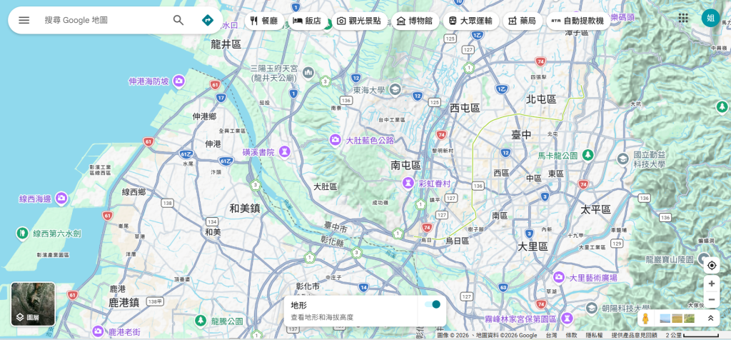 B.地理範圍。可考量:(以google地圖展示說明)