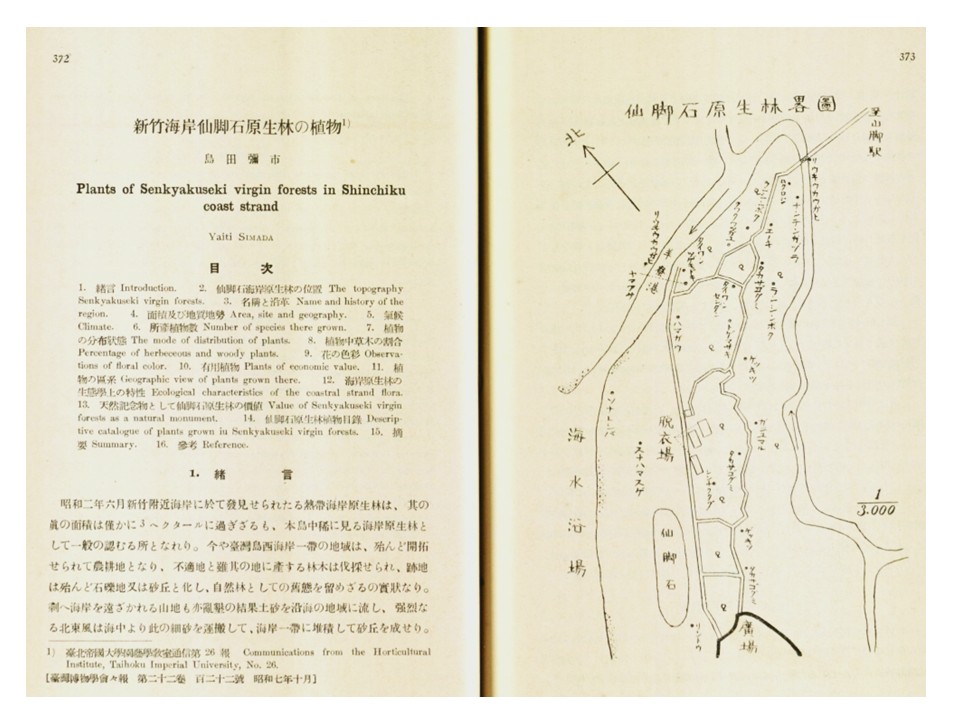 iii.新竹海岸仙脚石原生林の植物:1932年出版,記錄島田彌市在仙脚石(新竹鳳山溪出海口北岸一帶)的植物調查結果