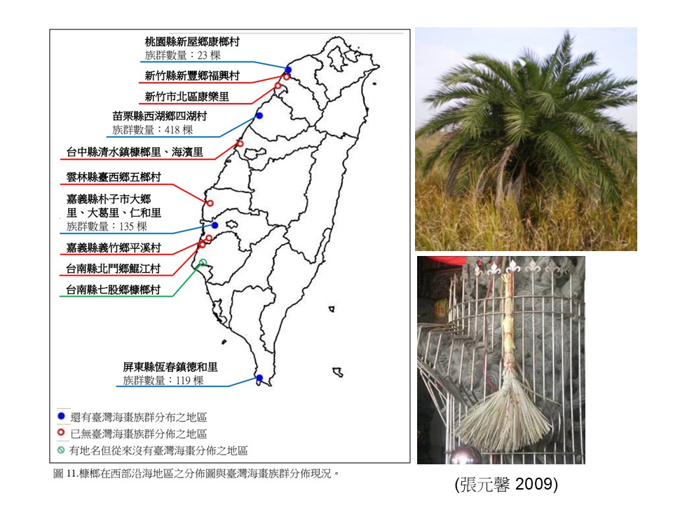 (案例)西海岸遍布槺榔(臺灣海棗)的地名,但今日半數以上無臺灣海棗的分布