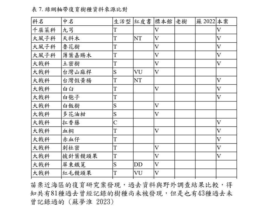 討論:西岸臨海植群復育樹種清單的課題
