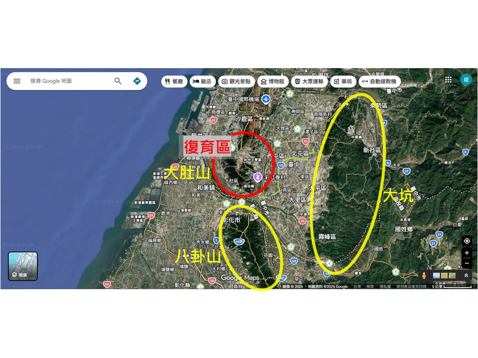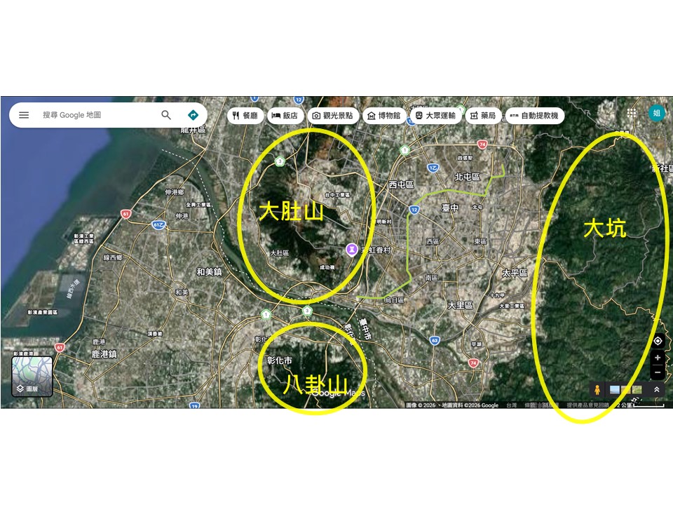 i.類似環境:相似氣候條件的鄰近地區,理論上植被應該類似(案例)大肚山和八卦山都屬於中部靠海丘陵,海拔相仿,且兩者位置相近,故理論上植被應該類似