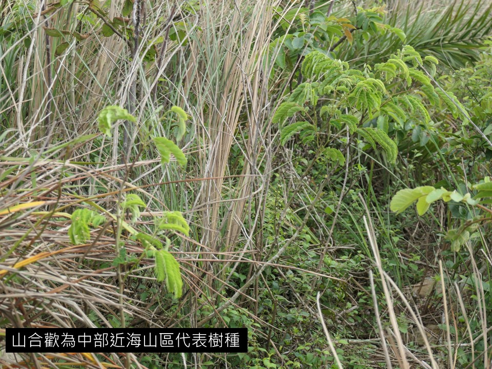 第一個案例是「生態代表性」。根據調查的資料,還有標本資料來看,有一種植物叫做「山合歡」,它應該是中部苗栗淺山近海區的山區的代表樹種,因為過去的紀錄只有出現在這個地方。這就是所謂的「生態代表性」,因為這個物種的出現就代表中部的近海山區,這叫「生態代表性」。