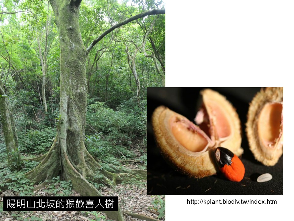 猴歡喜就有點像是這樣,種子大顆,所以鳥不吃。鳥不吃的,它的傳播力就會比較差。因為鳥會飛行,牠可以把種子帶離比較遠的地方。不是鳥類傳播的這些種子,通常它的傳播力就差。