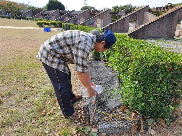 初期在協會服務時,夫妻倆多半從分盆做起,協會哪裡需要人手,他們就補上去。每週固定抽出半天時間,走進臺中都會公園,看看樹苗的狀況,澆水、整理,沒有分工,也不多想,只把眼前的事情做好。有幾次,他們搭著協會公務車,在園區裡來回替分散各處的樹苗澆水。車子慢慢開,一站一站停,用寶特瓶裝水,一棵一棵澆。那是一段很深刻的經驗——不是因為做了什麼了不起的事,而是第一次從這樣的角度,看見整片復育基地,也看見每一棵小樹正在努力撐過最需要被照顧的階段。