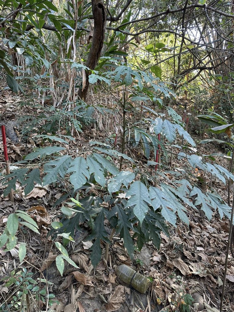調查過程發現,只要構樹或血桐傾倒形成林冠「孔隙」,江某、墨點櫻桃、白肉榕、菲律賓榕、澀葉榕、大葉楠、恆春厚殼樹、茄苳、幹花榕等樹種,在「孔隙光環境」刺激下,多數樹苗可生長至 2 公尺以上。而在未形成孔隙、林蔭較濃密的環境中,能耐陰且生長良好(枝葉繁茂)的樹種則包括:三斗石櫟、小西氏石柟、山香圓、狗骨仔、菲律賓榕、香楠、樹杞、海桐、小芽新木薑子、臺灣海棗、玉山紫金牛、石苓舅、降真香、九節木、山黃皮、山黃梔、糊樗、鴉膽子、臺灣山桂花、山柚等。