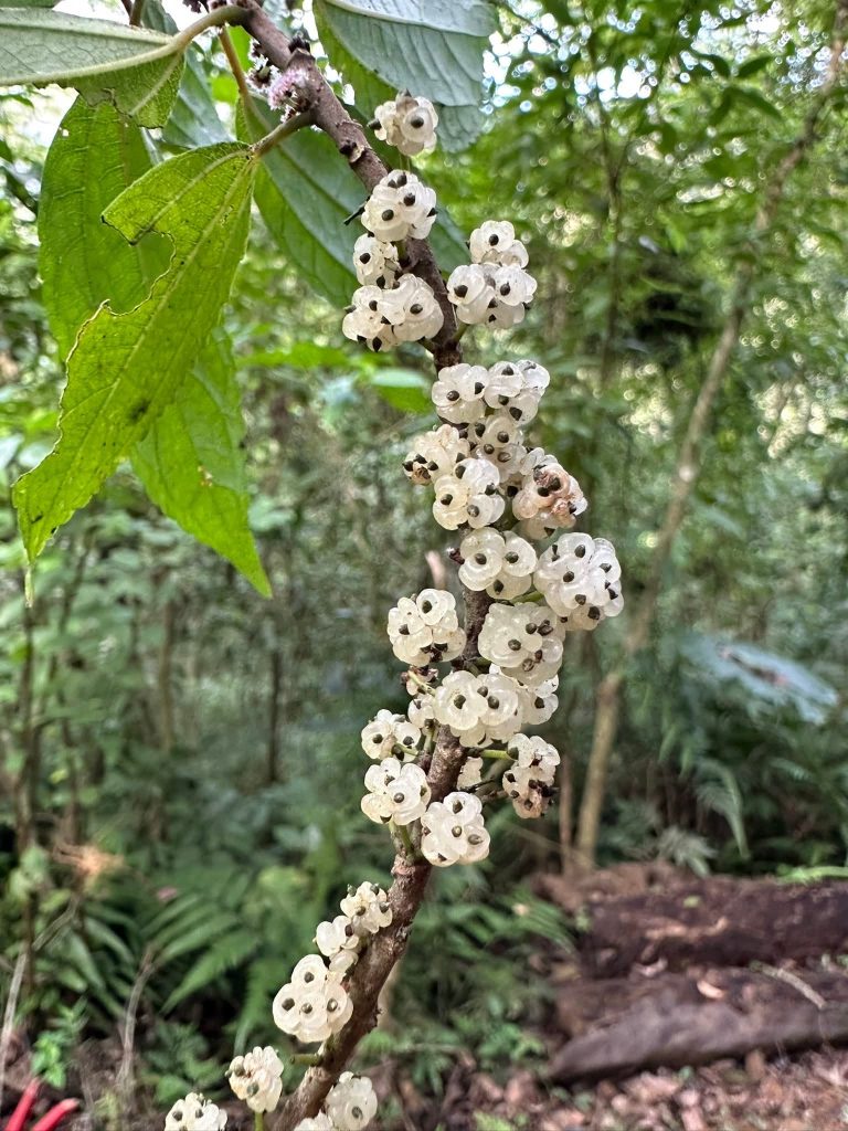 紀錄:稜果榕(4、5)、菲律賓饅頭果(4、5)、破布烏(1)、黃連木(3)、牧野氏山芙蓉(6)、月橘(4、5)、鐵雨傘(5)、小梗木薑子(4、5)、白肉榕(4)、皮孫木(5)、宜梧(4、5)、三葉山香圓(1)、水冬瓜(1、4、5)、薄葉嘉賜木(4)、臺灣山桂花(5)、杜虹花(5)、圓葉雞屎樹(5)、雞屎樹(5)、黑星紫金牛(4、5)、烏皮九芎(2)、長梗紫麻(5)、江某(4、5)、無患子(5)、山菜豆(5)、山龍眼(5)、天仙果(3)、糙葉耳藥花(2)、小實女貞(5)、軟毛柿(4)、山黃梔(4、5)