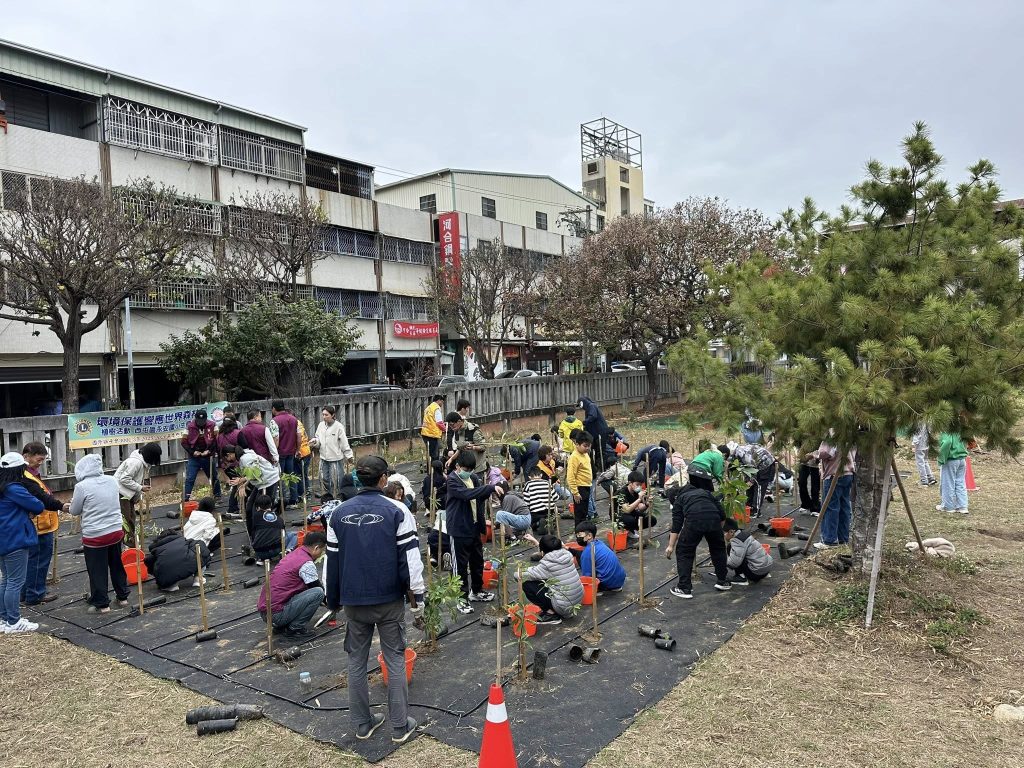 3月4日當天,國際獅子會300-C3區好幾個分會的獅友,一起參與永安國小的植樹教育活動。梁總監真的很厲害,他看完我的植樹教學示範後,馬上現學現賣,擔任起解說員的角色,向其他獅友與小朋友介紹生態樹島的功能。