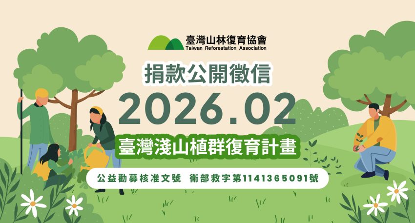 帳號:290-001-00355-7 臺灣戶名:社團法人臺灣山林復育協會