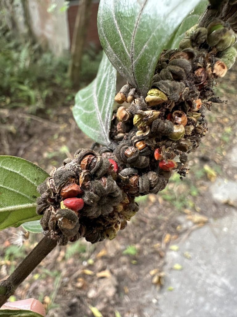 紀錄:長梗紫麻(2)、三葉山香圓(2)、臺灣山桂花(1、2)、密花苧麻(4)、長葉苧麻(2)、山漆(3)、腺葉澤蘭(草本,1、2、3)、梜木(1)、石朴(4)、通條木(1、2、)、月橘(6)、大葉溲疏(1、2、3、4、6)、杜虹花(1、2)、柘樹(0)、九芎(5)、天仙果(0)、粗糠柴(2、3)、山豬肉(0)、菲律賓饅頭果(5)、紅皮(1、2)、森氏紅淡比(5、6)、紅子莢蒾(1、2、3)、小梗木薑子(4、5)、軟毛柿(4、5)、山黃梔(5)、大葉雀榕(4、5)、賽欒華(1)、小花鼠刺(6)、薄葉嘉賜木(4、5)、黑星紫金牛(4、5)、小葉桑(4、5)、水冬瓜(4、5)、血桐(1、2)