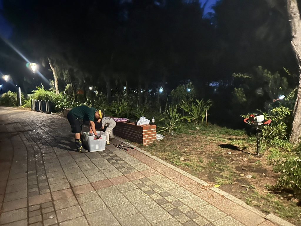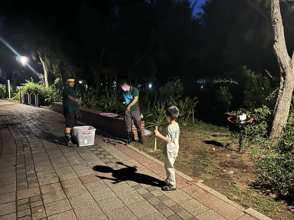 就在暮色中,張兄全家總動員,連讀國小的兩個孩子也穿梭在林間幫忙。直到晚上 6 點 40 分,天色全黑,我們終於在雨水落下前,順利完成最後一棵樹苗的栽植。那種對土地交代的踏實感,讓晚上的那頓便飯顯得格外溫馨。