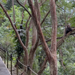 今日臺灣山林復育協會來到花蓮鯉魚山步道進行物候採種,回程看到猴王在保護一群小猴子及母猴。猴王趴在「九芎」的樹幹…